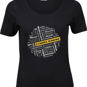 Słowo na ubraniu działa jak wizualny sygnał.